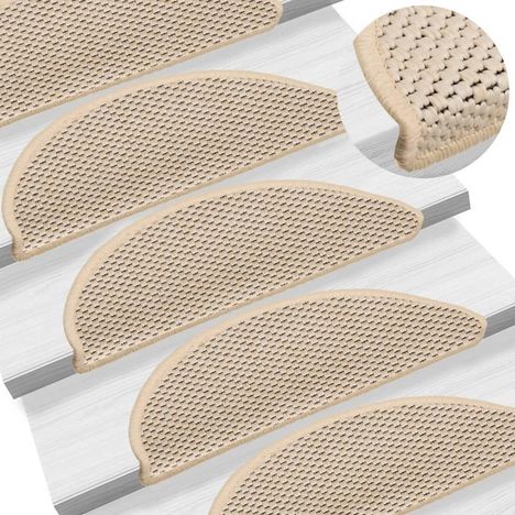 Ces tapis sont faits d'un tissu solide a l'aspect de sisal, donc ils sont insonorisants, antiderapants, chauds et confortables. Ces tapis d'escalier sont egalement lavables et sont plies pour proteger a la fois le haut et l'avant de l'escalier. Les bandes adhesives au dos permettent de fixer facilement et rapidement ces tapis aux escaliers.