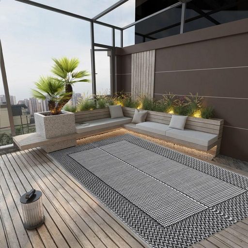 Ce tapis d'exterieur tendance est un excellent supplement decoratif a votre espace de vie exterieur ! Placez-le dans votre zone de sieges sur votre balcon, terrasse et patio pour la rendre instantanement plus accueillante.