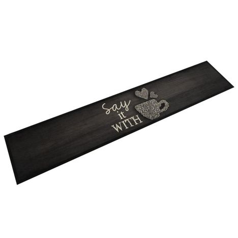 Tapis de cuisine lavable imprime tasse noir 60x300 cm velours