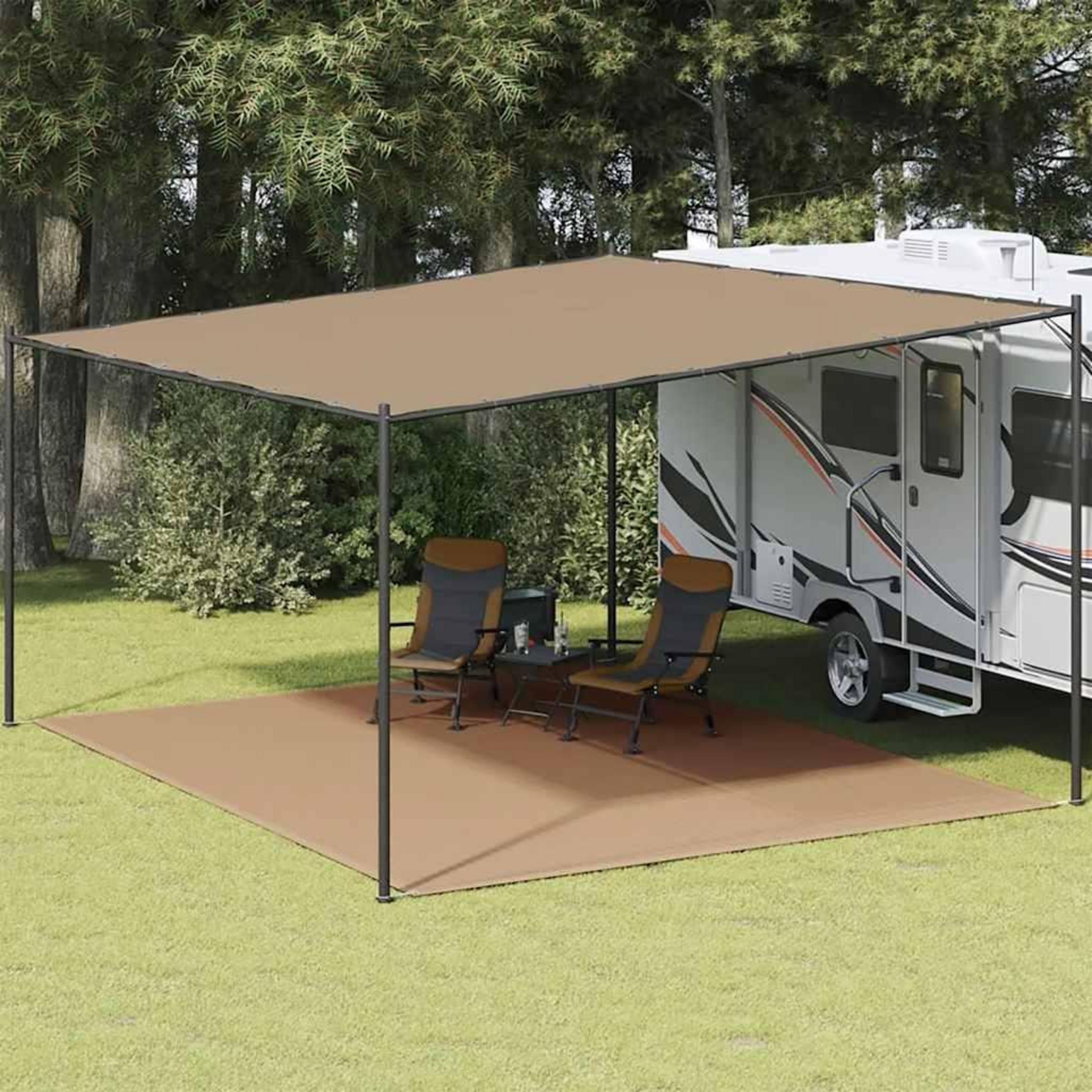 Le tapis de tente est fait de polyethylene haute densite qui a une bonne permeabilite a l'eau et une bonne respirabilite. Le tapis de tente est conçu avec les œillets integres a ses quatre coins et deux œillets supplementaires sur le long cote central pour une fixation pratique. Le tapis d'exterieur est facile a nettoyer avec de l'eau. Lorsqu'il est necessaire, le tapis de tente peut etre facilement coupe a la taille desiree.