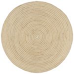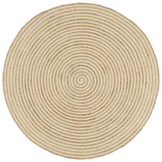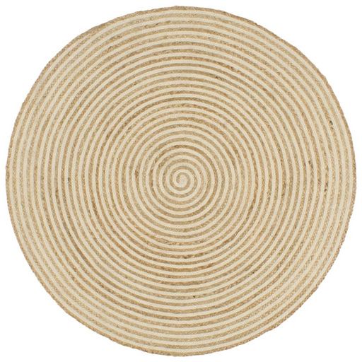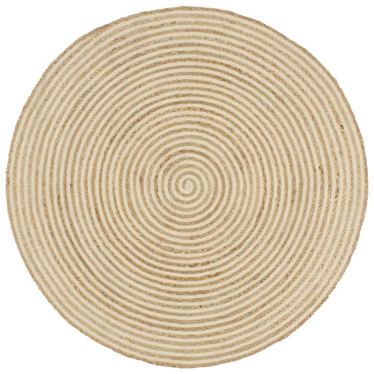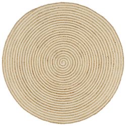 Tapis fait a la main Jute avec design de spirale Blanc 90 cm