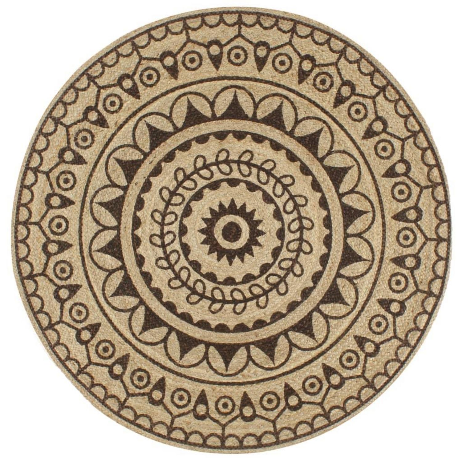 Tapis fait a la main Jute avec imprime marron fonce 90 cm