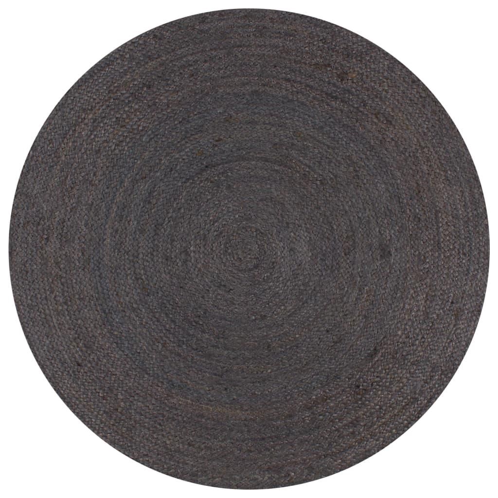 Tapis fait a la main Jute Rond 150 cm Gris fonce