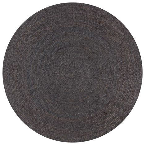 Tapis fait a la main Jute Rond 90 cm Gris fonce