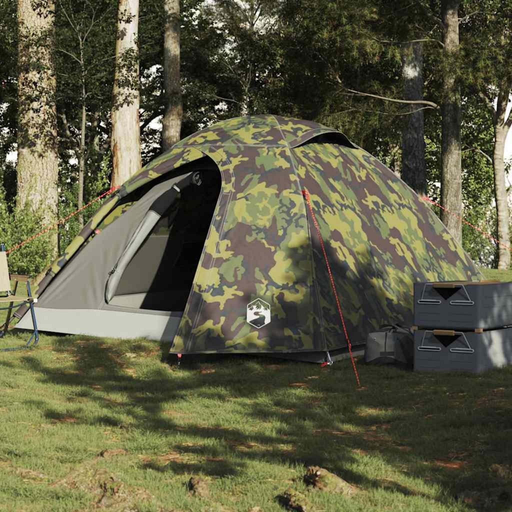 Cette tente de camping a l'aspect moderne vous protege des intemperies et vous offre un espace confortable pour vos aventures en tout lieu.