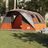 Tente de camping tunnel 5 personnes gris et orange impermeable