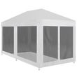 Fabriquee en acier enduit de poudre, cette tente de reception est extremement durable. Le revetement de toiture est en polyethylene de haute qualite, ce qui le rend resistant a l'eau et aux UV. La tente dispose de six parois laterales en maille qui vous protegent des insectes nuisibles. L'une des parois laterales a une entree a fermeture eclair pour un acces facile. La tente de reception est facile a installer avec les accessoires de montage inclus.
