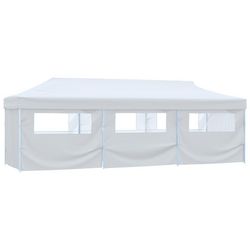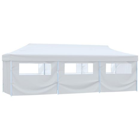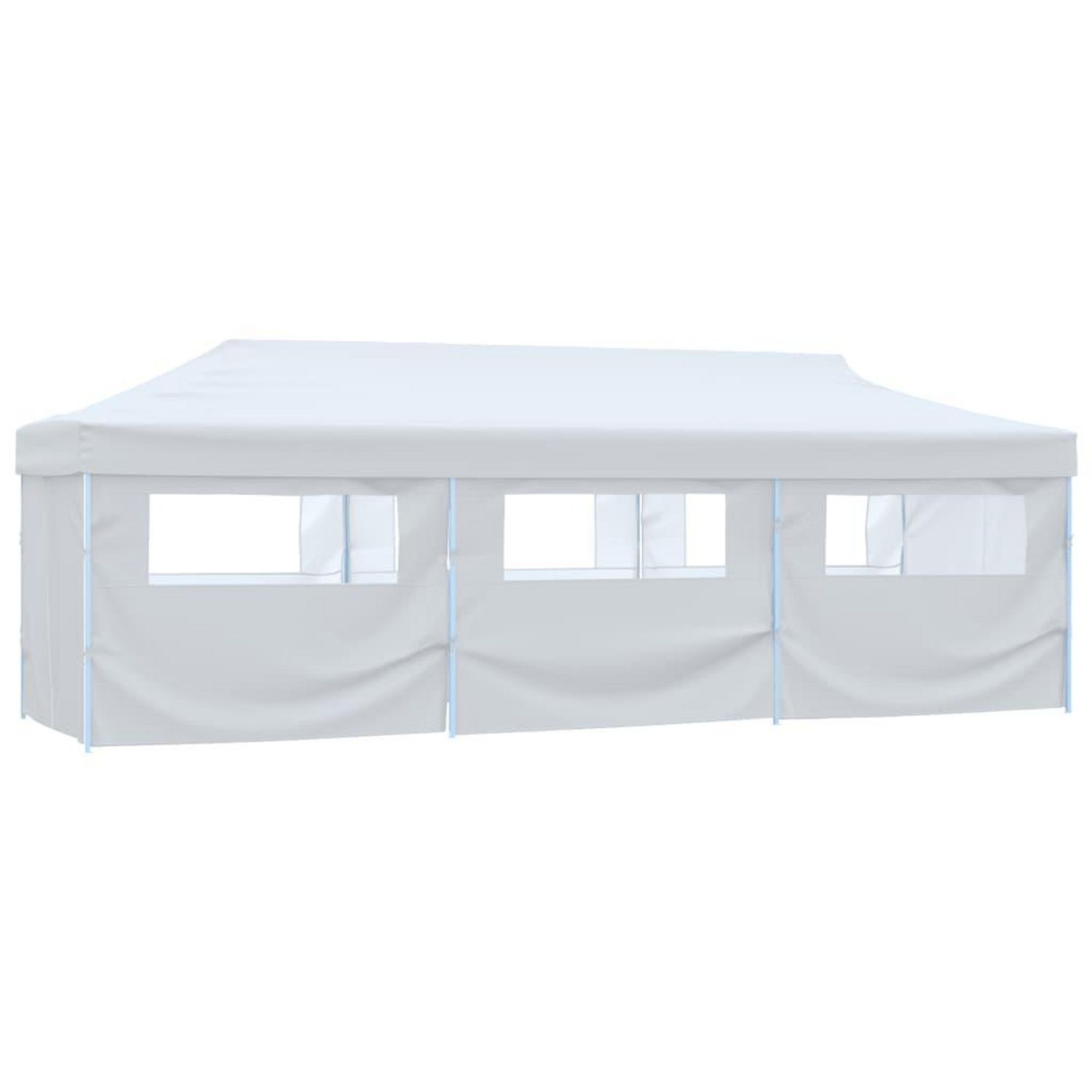 Tente de reception escamotable avec 8 parois 3 x 9 m Blanc
