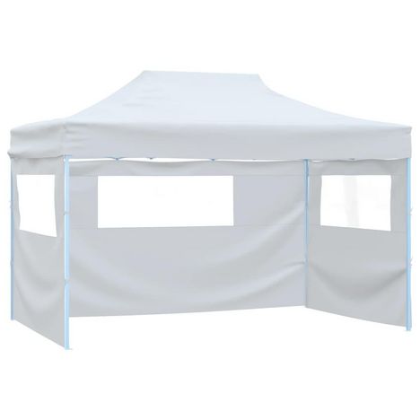 Tente de reception pliable avec 3 parois 3x4 m Acier Blanc