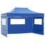 Tente de reception pliable avec 3 parois 3x4 m Acier Bleu