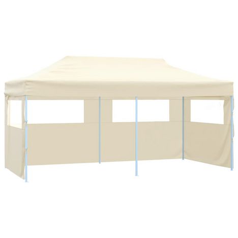 Tente de reception pliable avec 4 parois 3x6 m Acier Creme