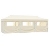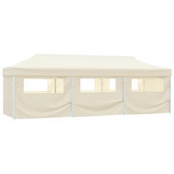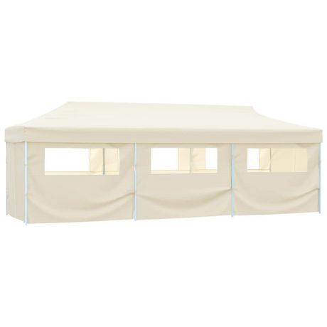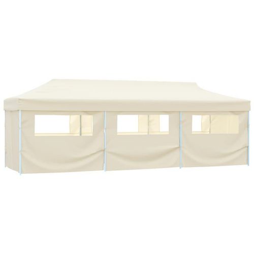 Tente de reception pliable avec 8 parois 3x9 m Blanc casse