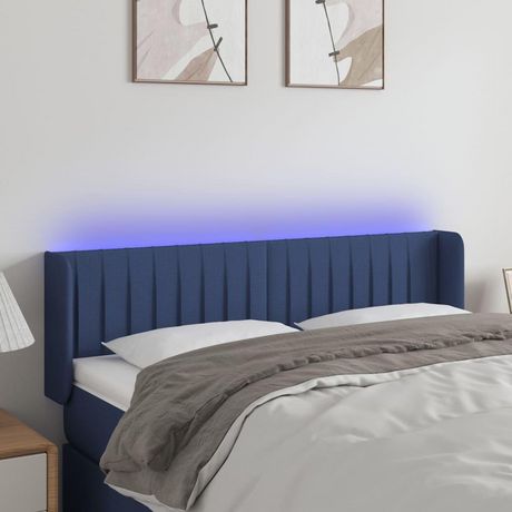 Tete de lit a LED Bleu 147x16x78/88 cm Tissu