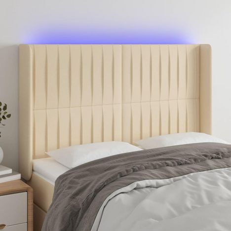 Tete de lit a LED Creme 147x16x118/128 cm Tissu