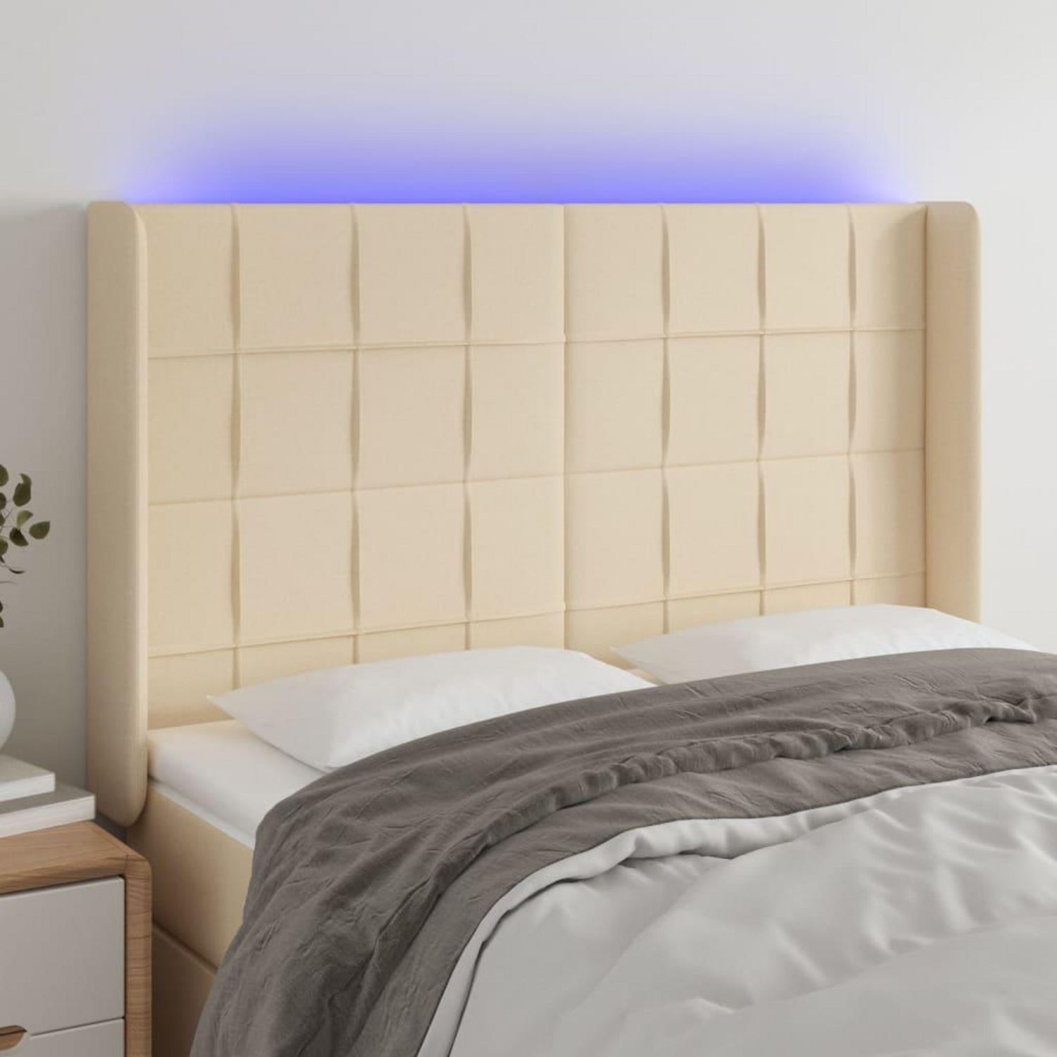 Tete de lit a LED Creme 147x16x118/128 cm Tissu