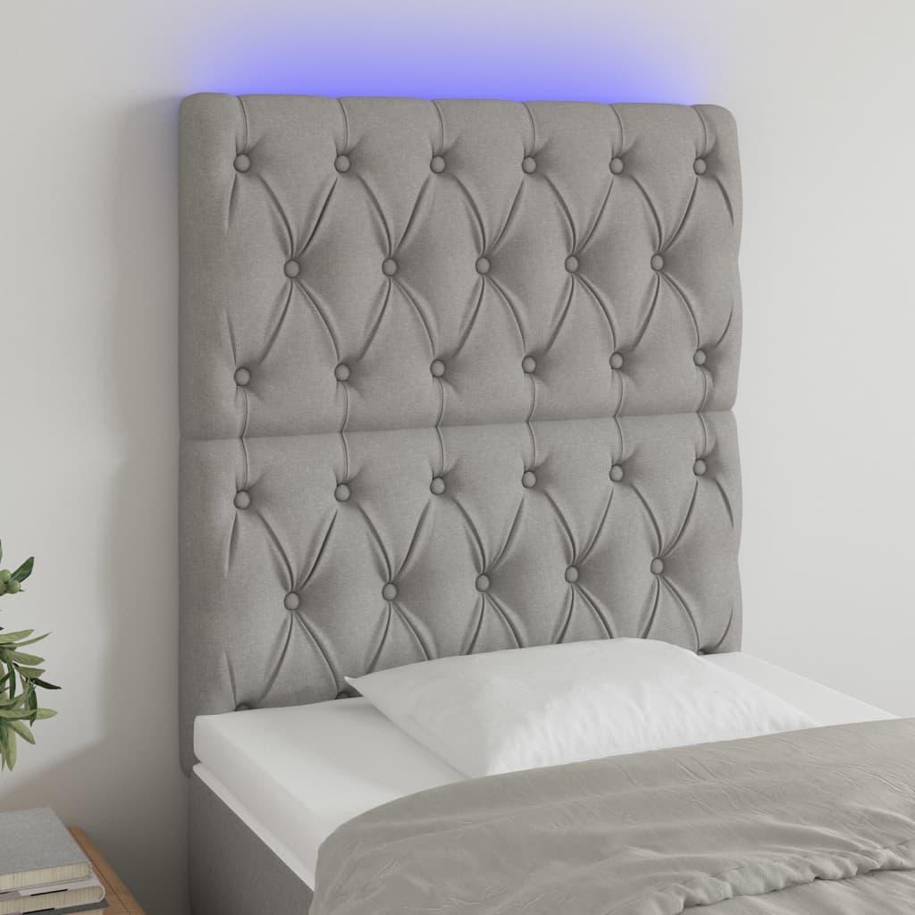 Tete de lit a LED Gris clair 80x7x118/128 cm Tissu