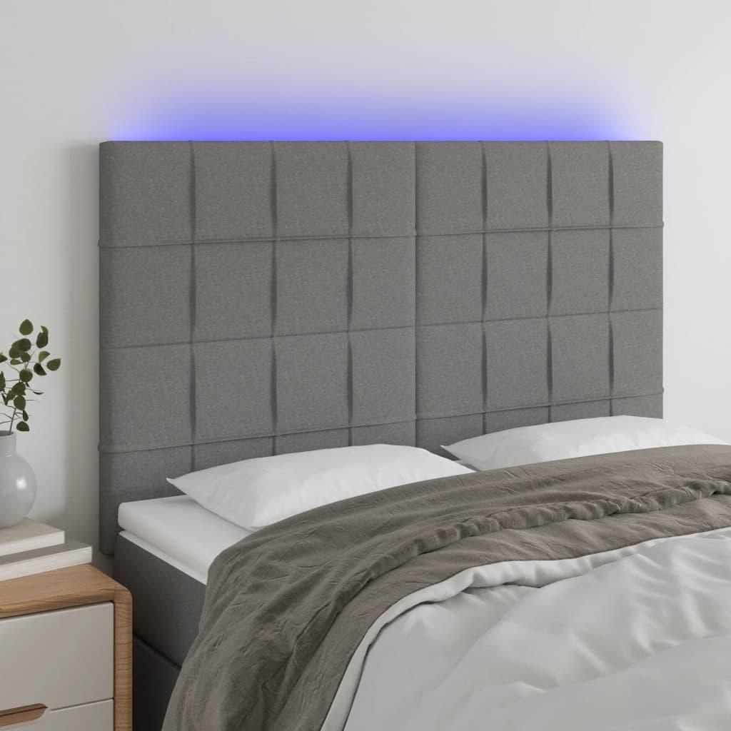 Tete de lit a LED Gris fonce 144x5x118/128 cm Tissu