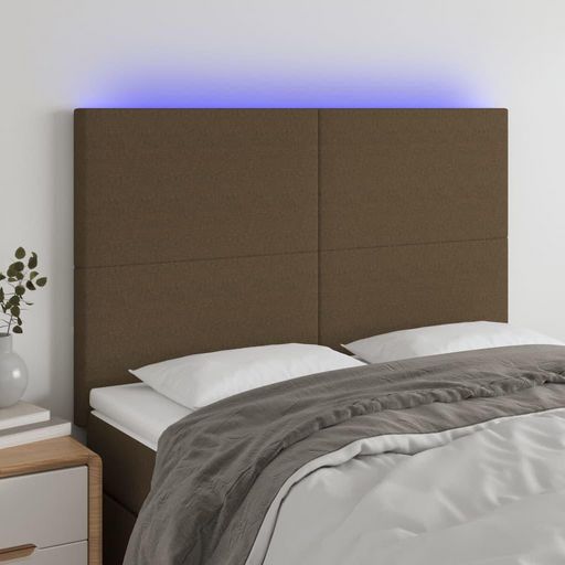 Tete de lit a LED Marron fonce 144x5x118/128 cm Tissu