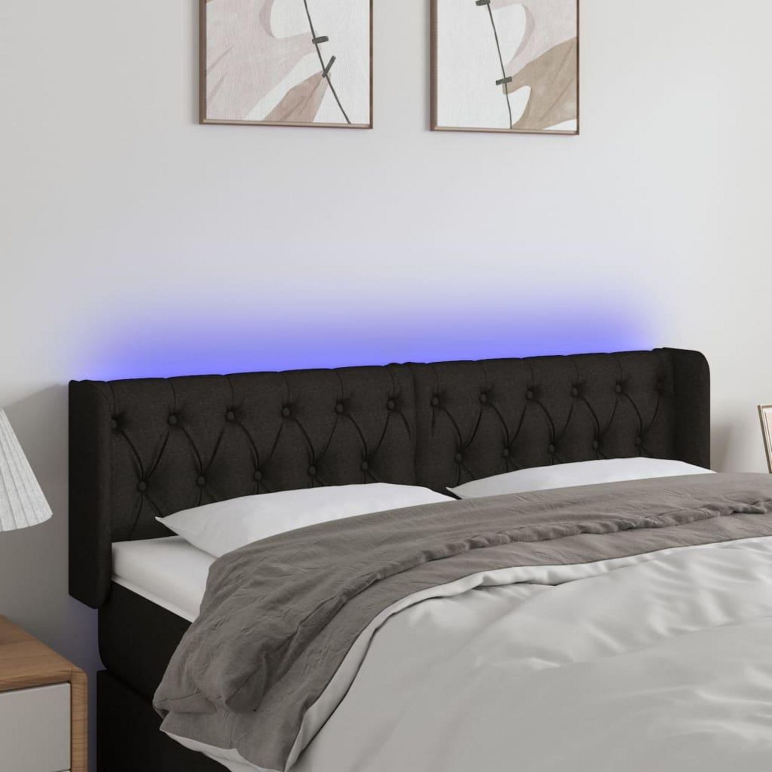 Tete de lit a LED Noir 163x16x78/88 cm Tissu