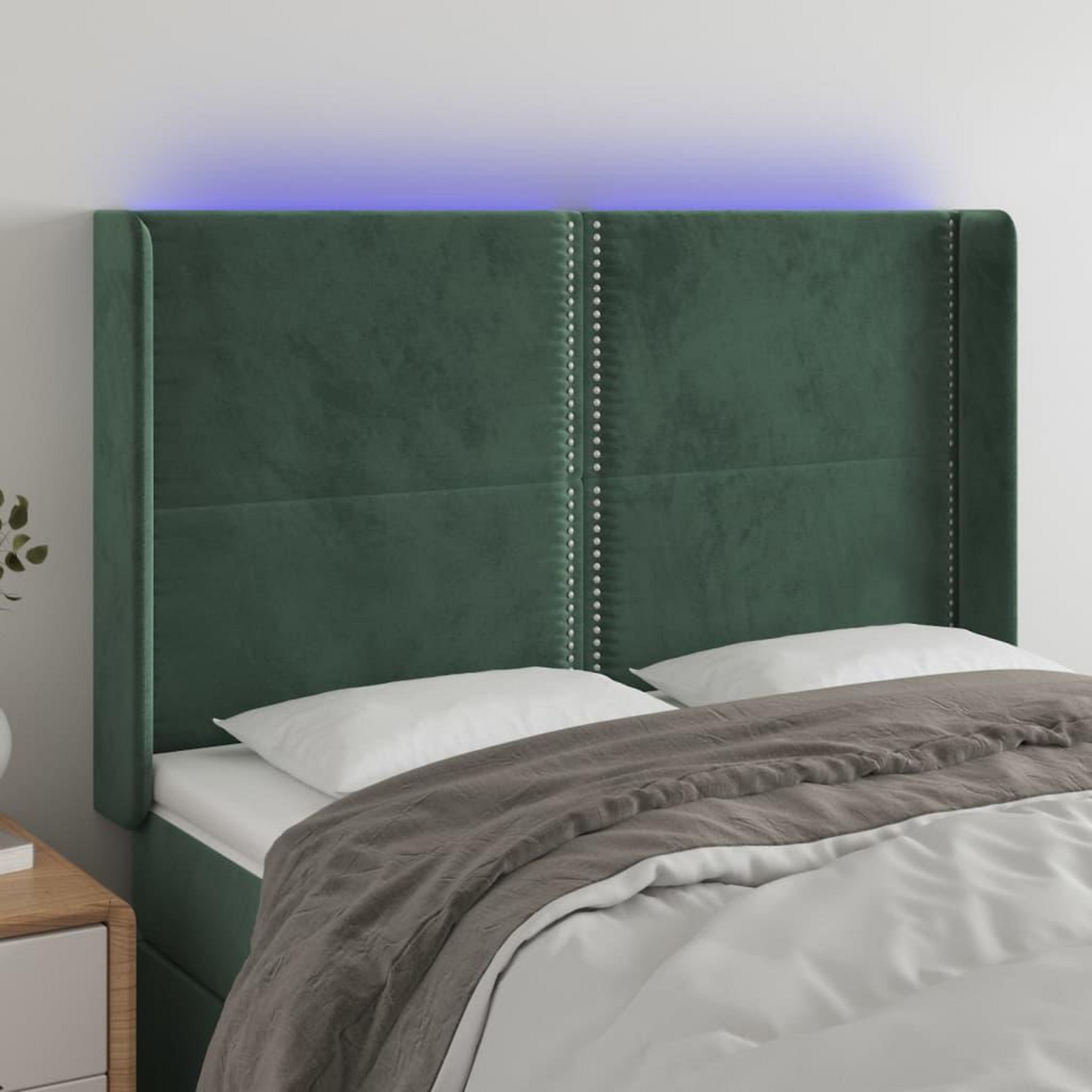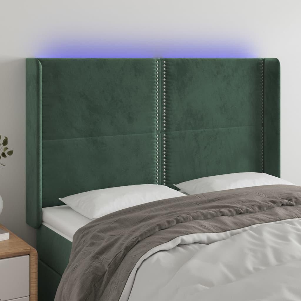 Tete de lit a LED Vert fonce 147x16x118/128 cm Velours
