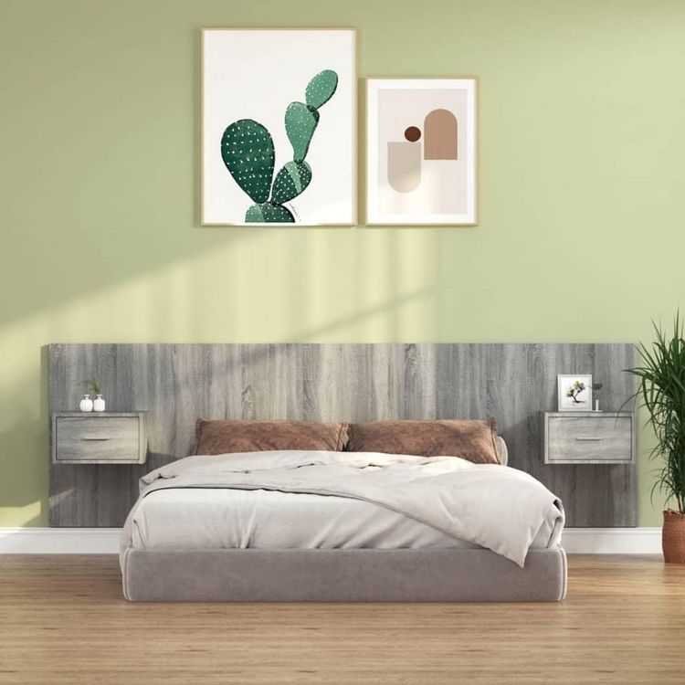 - Design mural : les tables de chevet flottantes et la tete de lit peuvent etre fixees au mur. De cette façon, vous pouvez maximiser votre espace au sol et garder la zone propre.