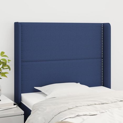 Tete de lit avec oreilles Bleu 103x16x118/128 cm Tissu