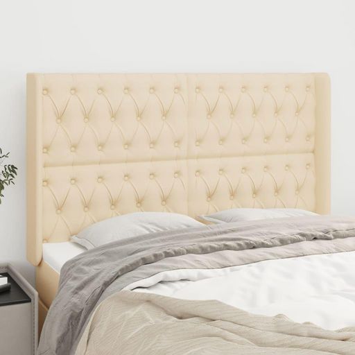 Tete de lit avec oreilles Creme 147x16x118/128 cm Tissu