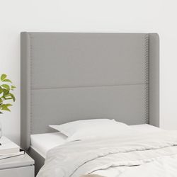 Tete de lit avec oreilles Gris clair 103x16x118/128 cm Tissu