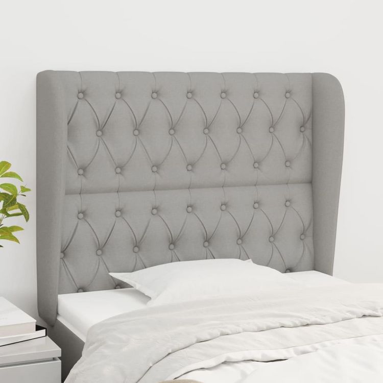 Tete de lit avec oreilles Gris clair 103x23x118/128 cm Tissu