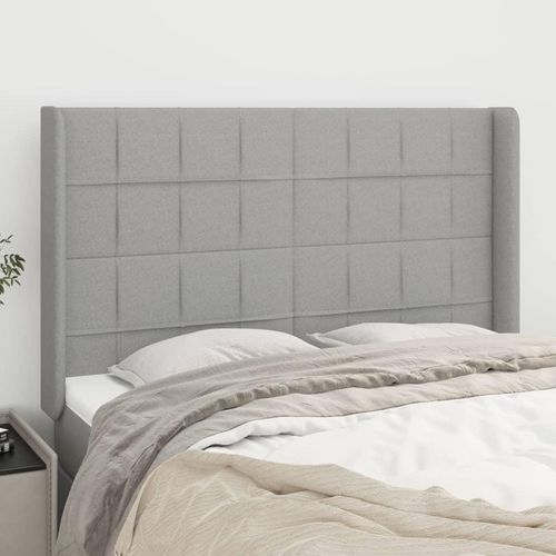 Tete de lit avec oreilles Gris clair 147x16x118/128 cm Tissu
