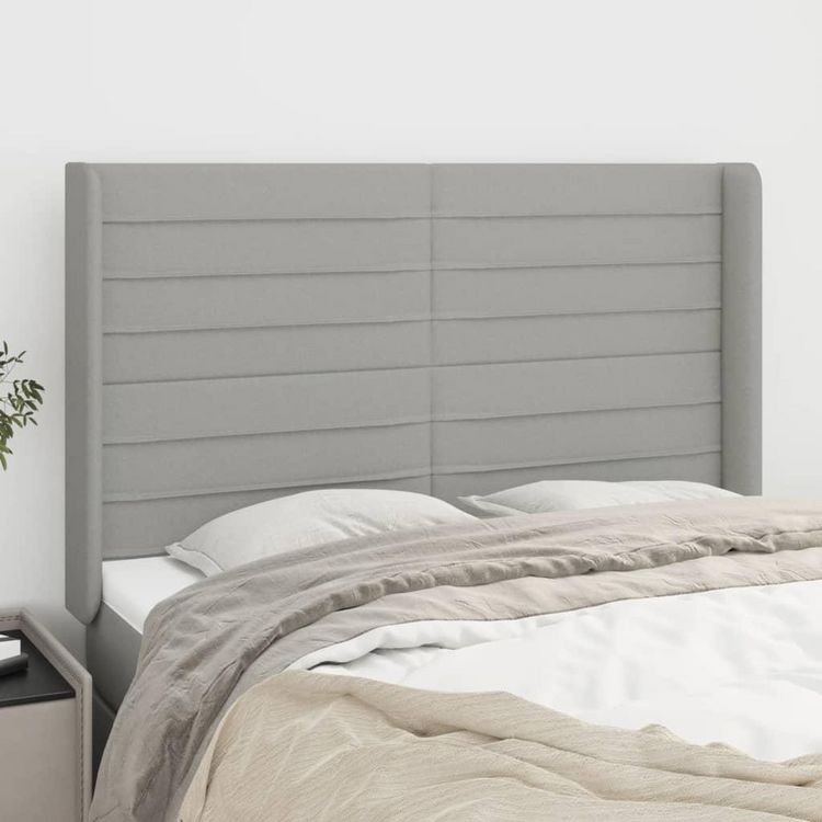 Tete de lit avec oreilles Gris clair 147x16x118/128 cm Tissu