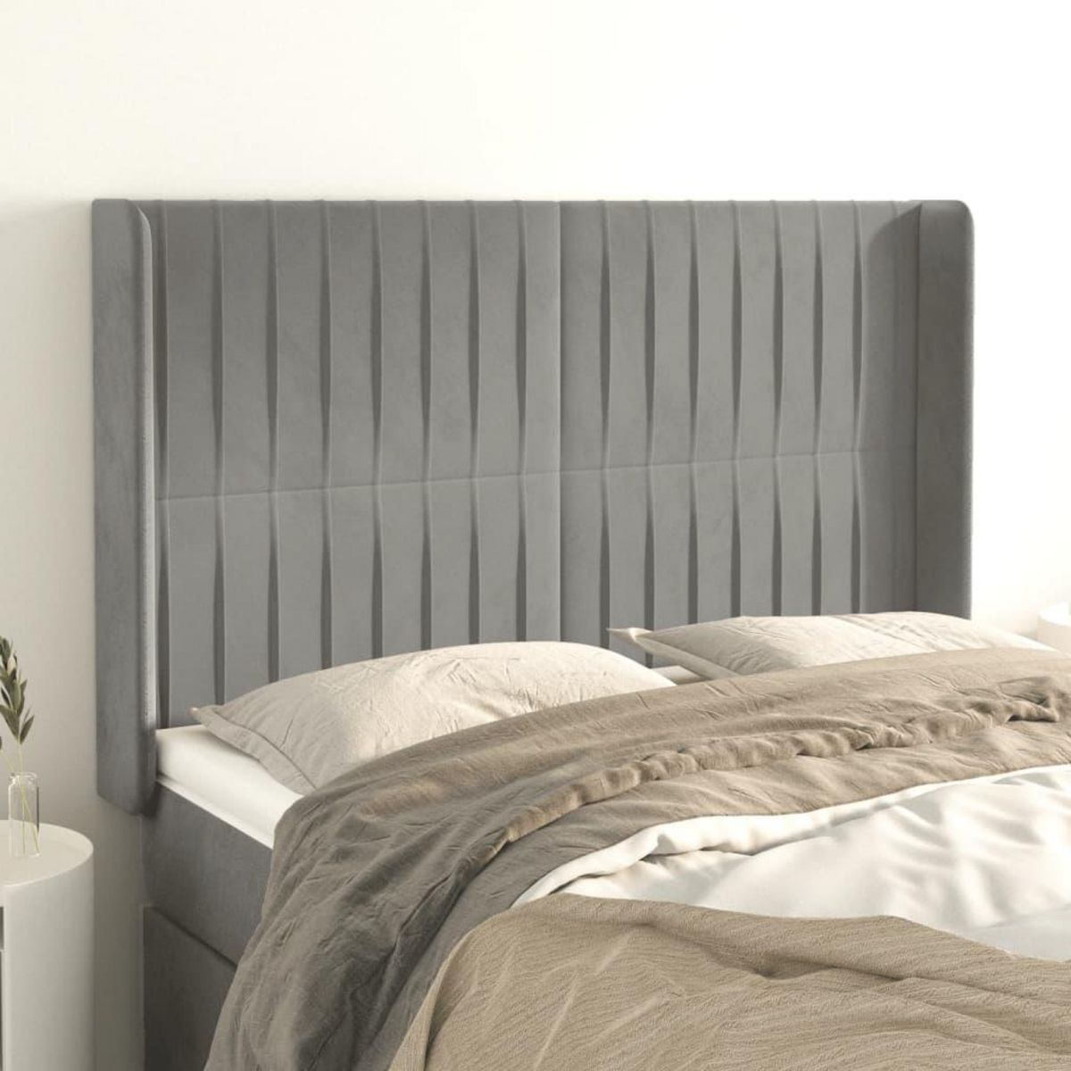 Tete de lit avec oreilles Gris clair 147x16x118/128 cm Velours