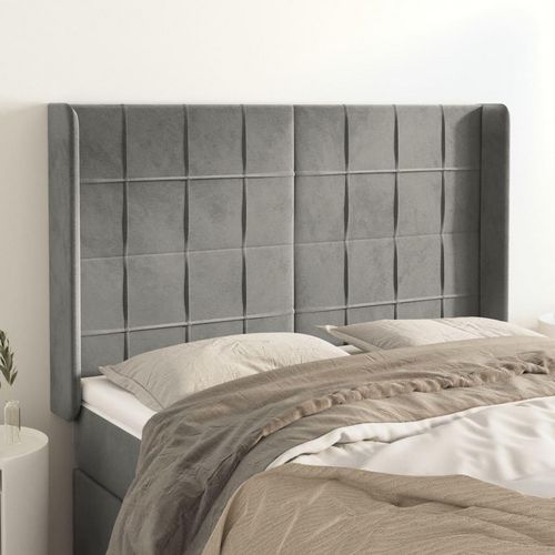 Tete de lit avec oreilles Gris clair 147x16x118/128 cm Velours