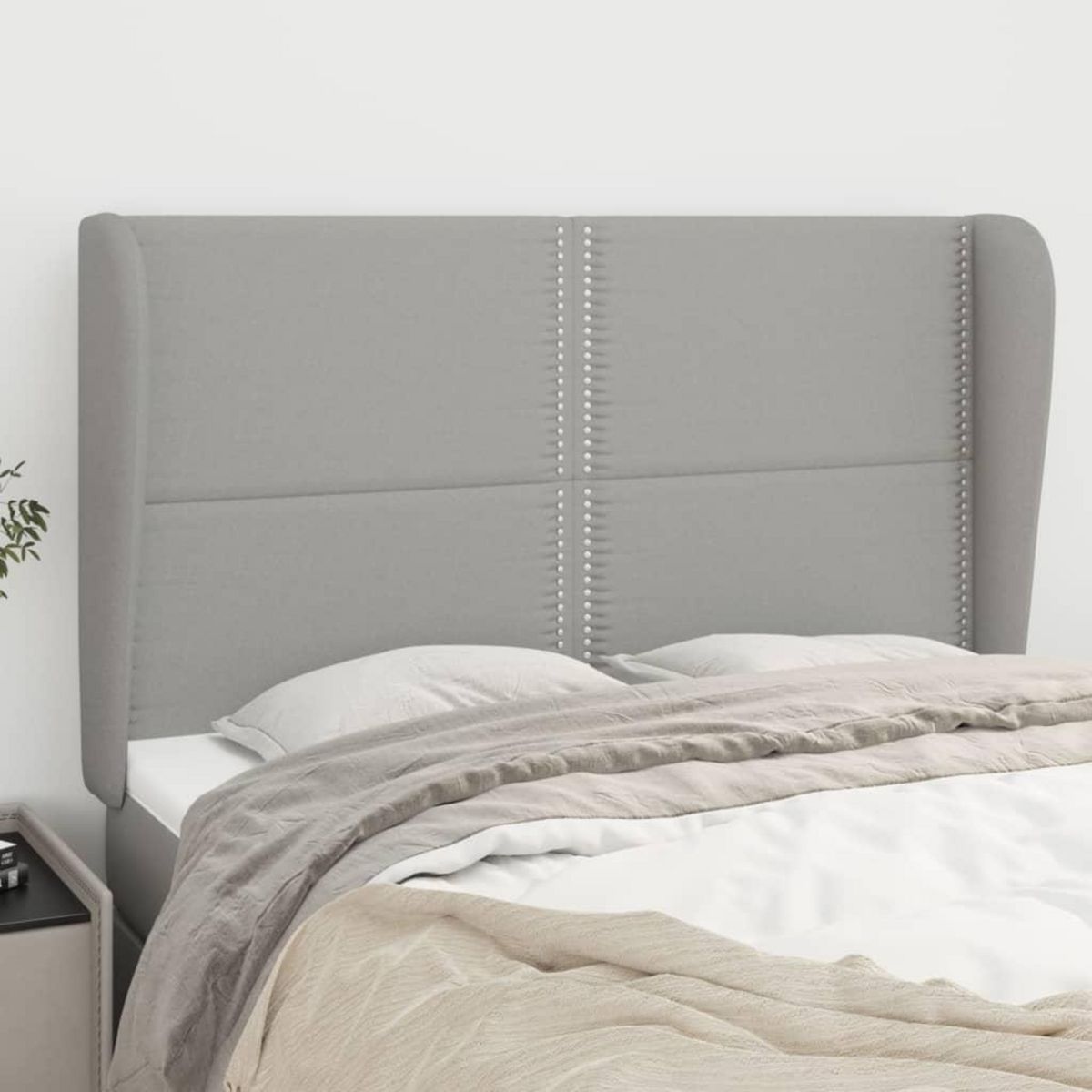 Tete de lit avec oreilles Gris clair 147x23x118/128 cm Tissu