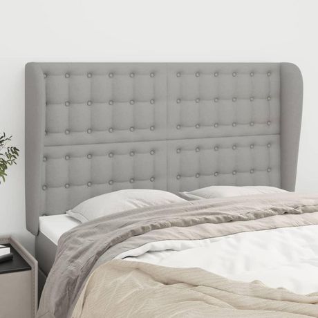 Tete de lit avec oreilles Gris clair 147x23x118/128 cm Tissu