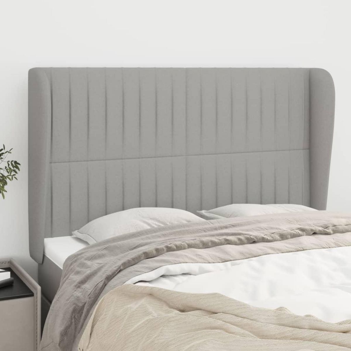 Tete de lit avec oreilles Gris clair 147x23x118/128 cm Tissu