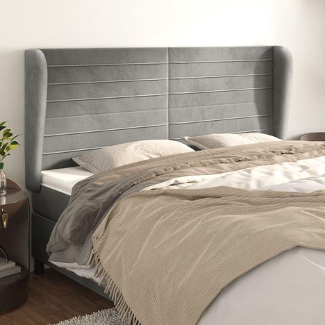 Tete de lit avec oreilles Gris clair 163x23x118/128 cm Velours