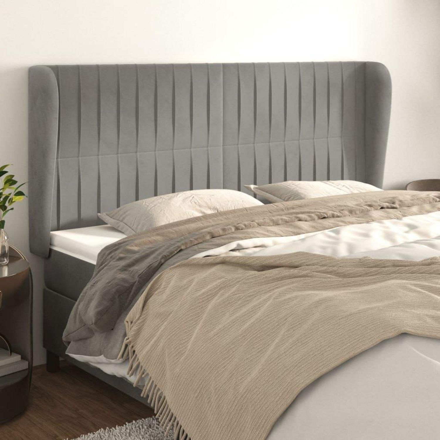 Tete de lit avec oreilles Gris clair 203x23x118/128 cm Velours