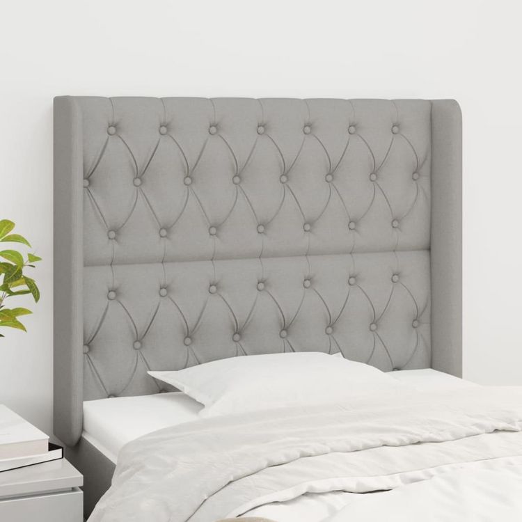 Tete de lit avec oreilles Gris clair 93x16x118/128 cm Tissu