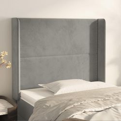 Tete de lit avec oreilles Gris clair 93x16x118/128 cm Velours