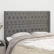 Tete de lit avec oreilles Gris fonce 147x16x118/128 cm Tissu