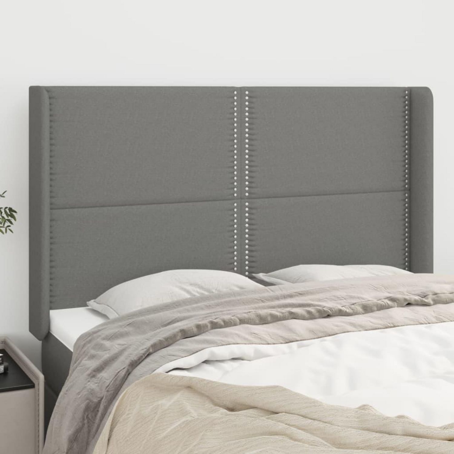 Tete de lit avec oreilles Gris fonce 147x16x118/128 cm Tissu