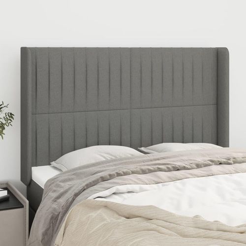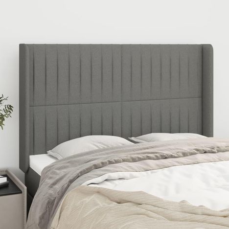 Tete de lit avec oreilles Gris fonce 147x16x118/128 cm Tissu