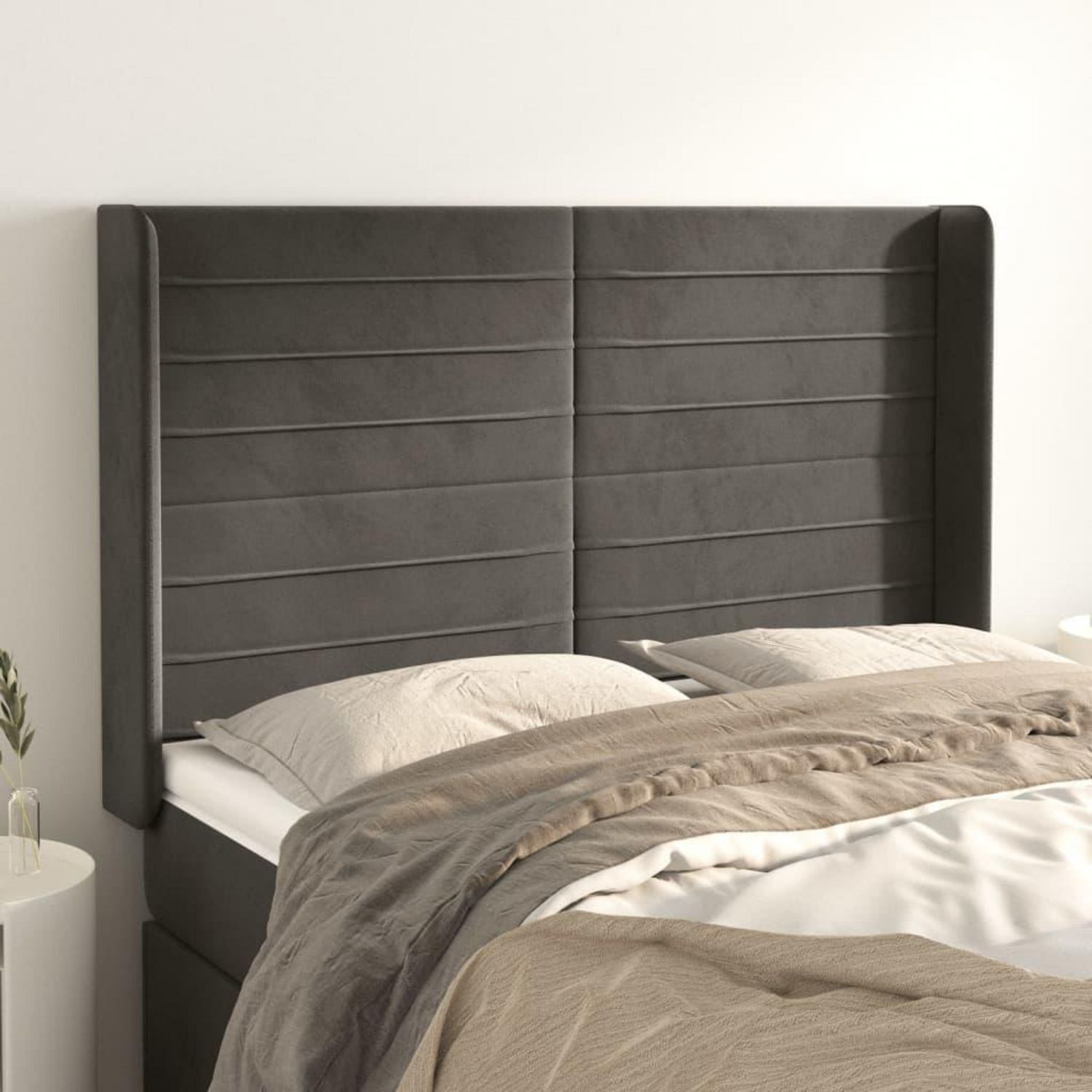 Tete de lit avec oreilles Gris fonce 147x16x118/128 cm Velours
