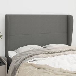 Tete de lit avec oreilles Gris fonce 147x23x118/128 cm Tissu