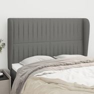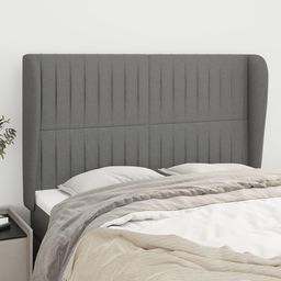 Tete de lit avec oreilles Gris fonce 147x23x118/128 cm Tissu