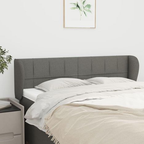 Tete de lit avec oreilles Gris fonce 147x23x78/88 cm Tissu
