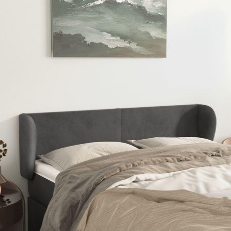 Tete de lit avec oreilles Gris fonce 147x23x78/88 cm Velours