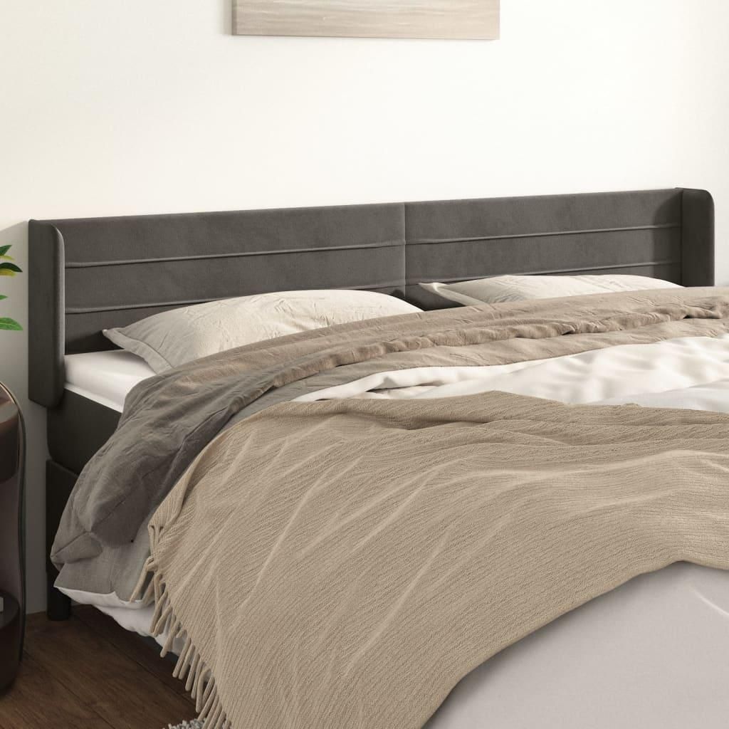 Tete de lit avec oreilles Gris fonce 163x16x78/88 cm Velours
