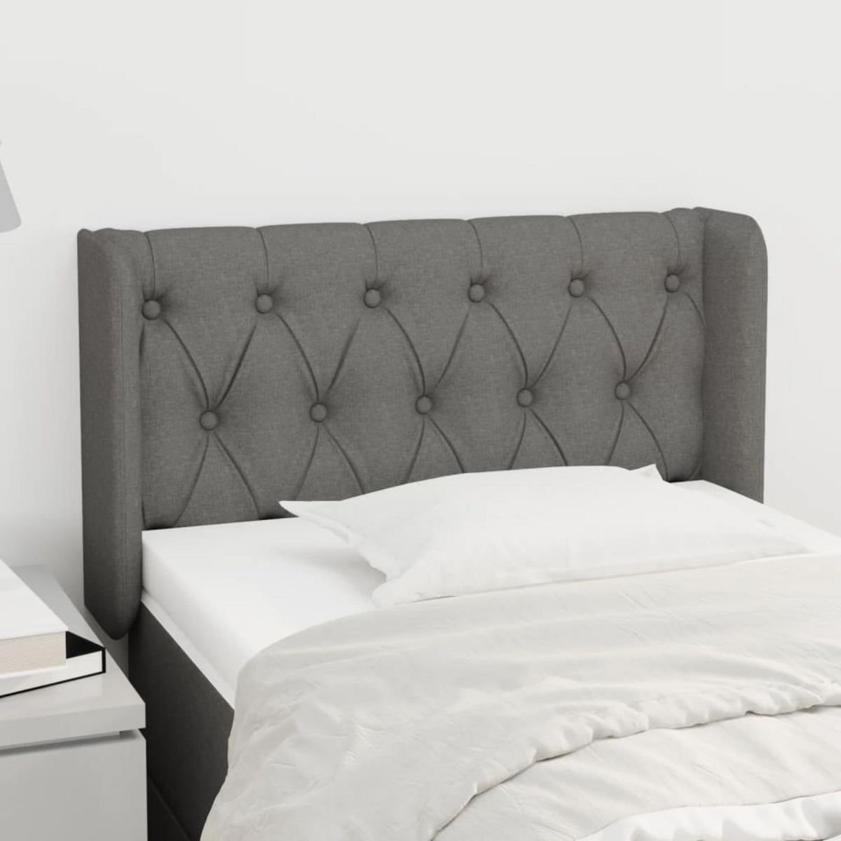 Tete de lit avec oreilles Gris fonce 83x16x78/88 cm Tissu